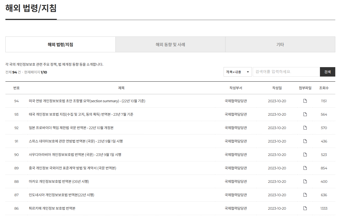 해외 법령/지침 | 개인정보보호위원회 > > 정책 · 제도>국외동향>해외 개인정보 자료실 (pipc.go.kr)