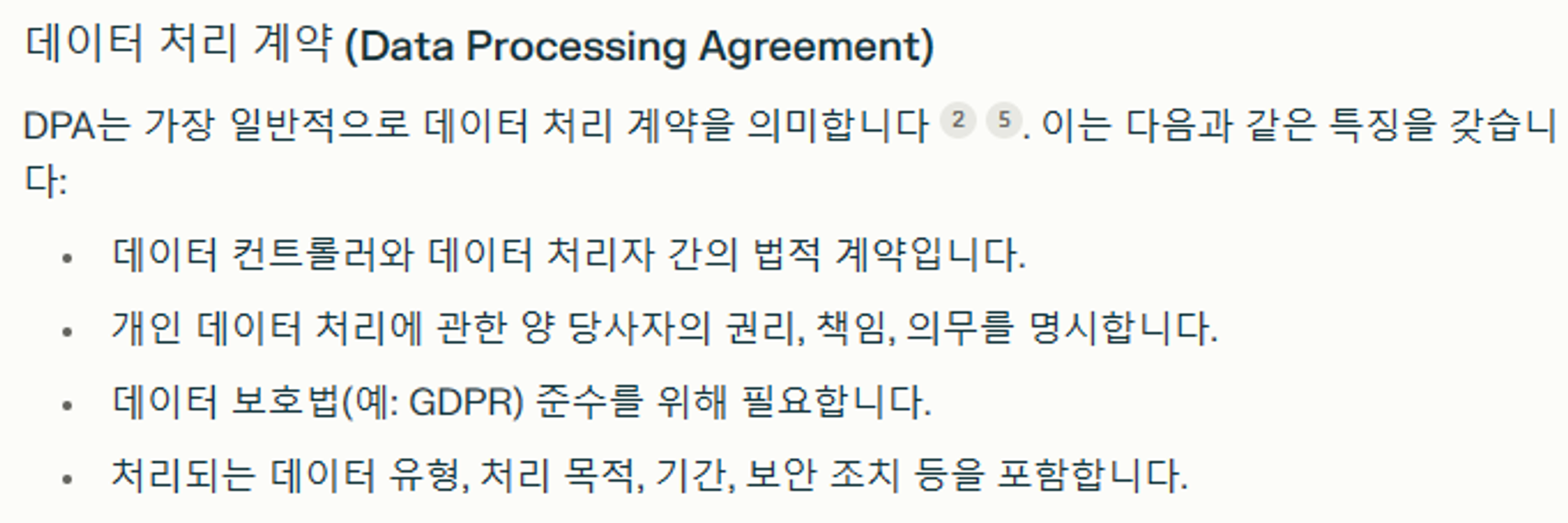 DPA란 데이터 처리 계약을 의미하고, GDPR의 요건 중 하나이다.