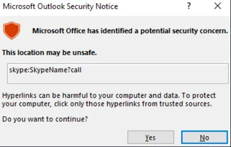 Microsoft Office의 자체 기능으로, 악의적인 외부 컨텐츠가 임의로 실행되는 것을 방지한다. (샌드박스 개념!!) 한국어로는 제한된보기! 흔히 엑셀이나 워드 파일도, 다운받았을 시 제한된 보기로 열리는 경우도 이에 해당한다. 아웃룩은 사용을 하지 않아 몰랐으나 의심되는 하이퍼링크가 삽입된 경우, 아래와 같은 경고창이 뜬다고 한다.