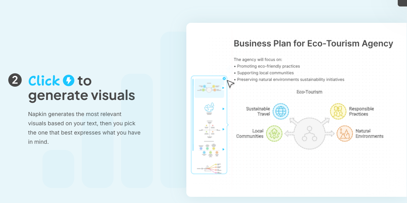Just type, copy-paste or generate your text and Napkin will instantly transform it into insightful visuals. Make your communication more effective with Napkin.