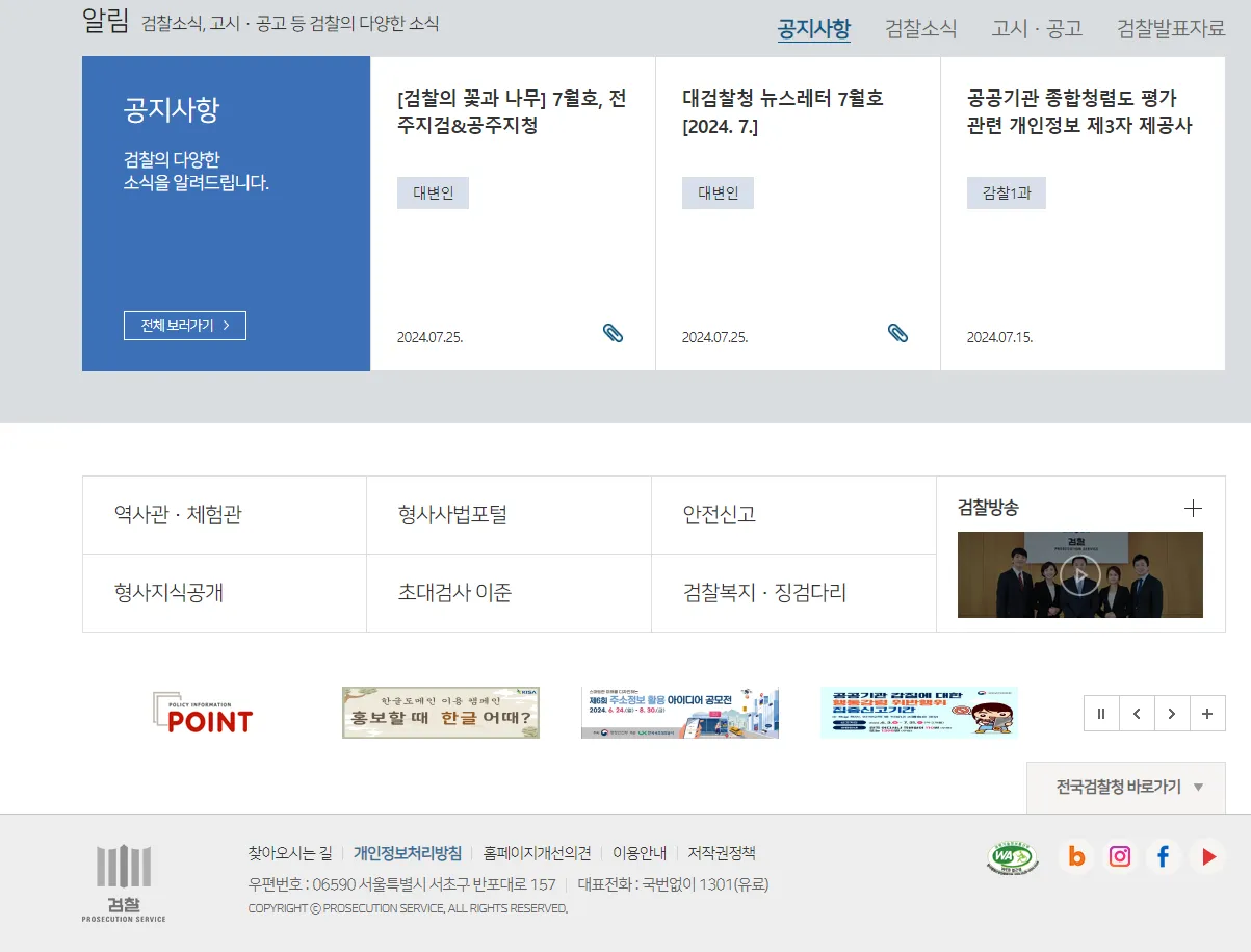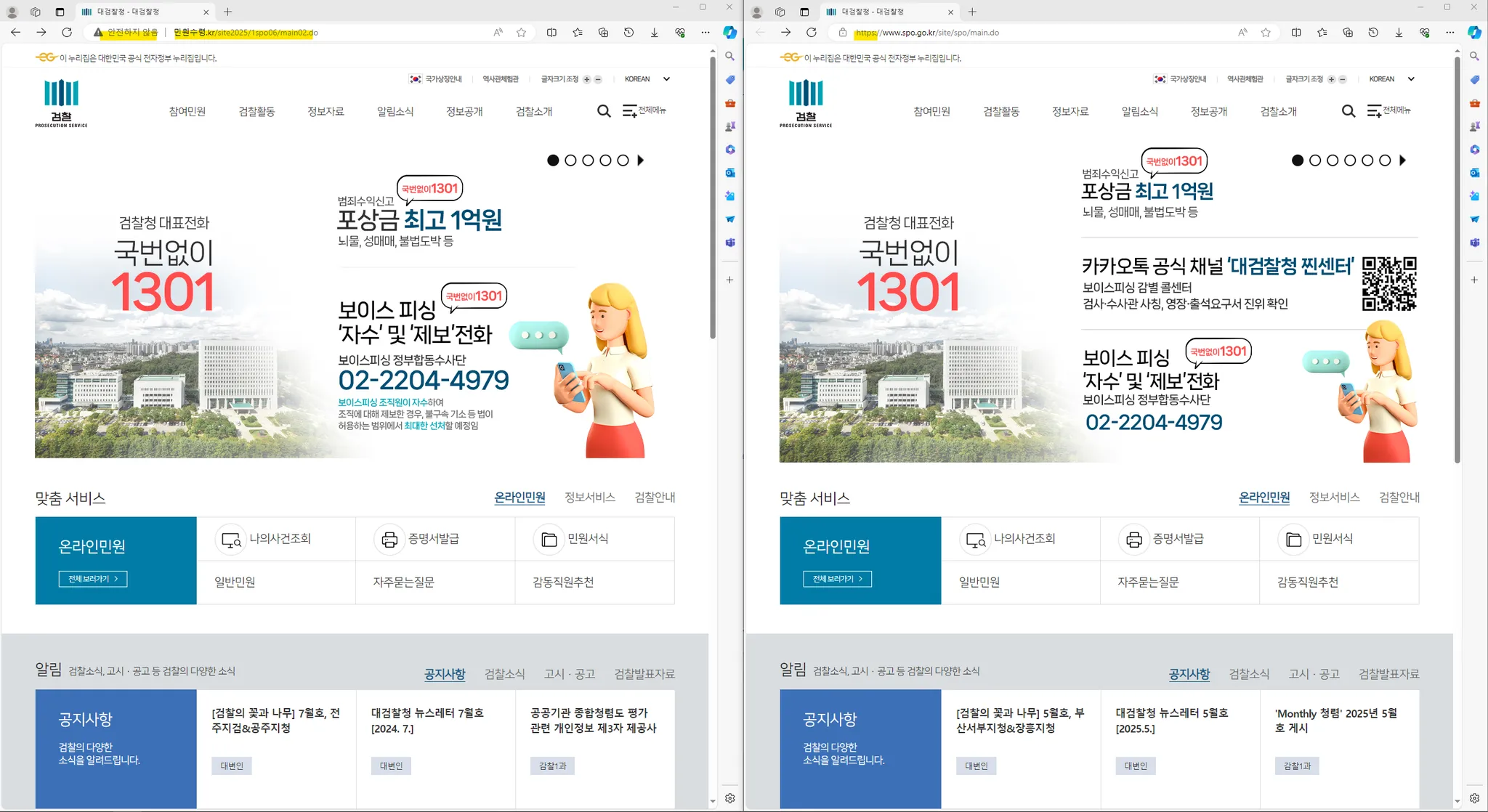 바로 피싱범이 부르는대로 페이지 들어가보니 대검찰청 페이지길래 공식 대검찰청 페이지도 접속해서 동시비교 해줬습니다 . .